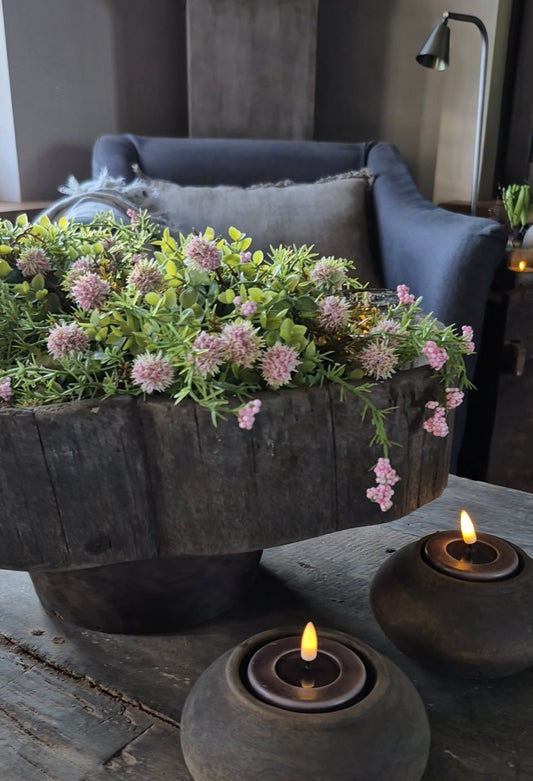 Stoere en landelijke woonaccessoires met kunstbloemen