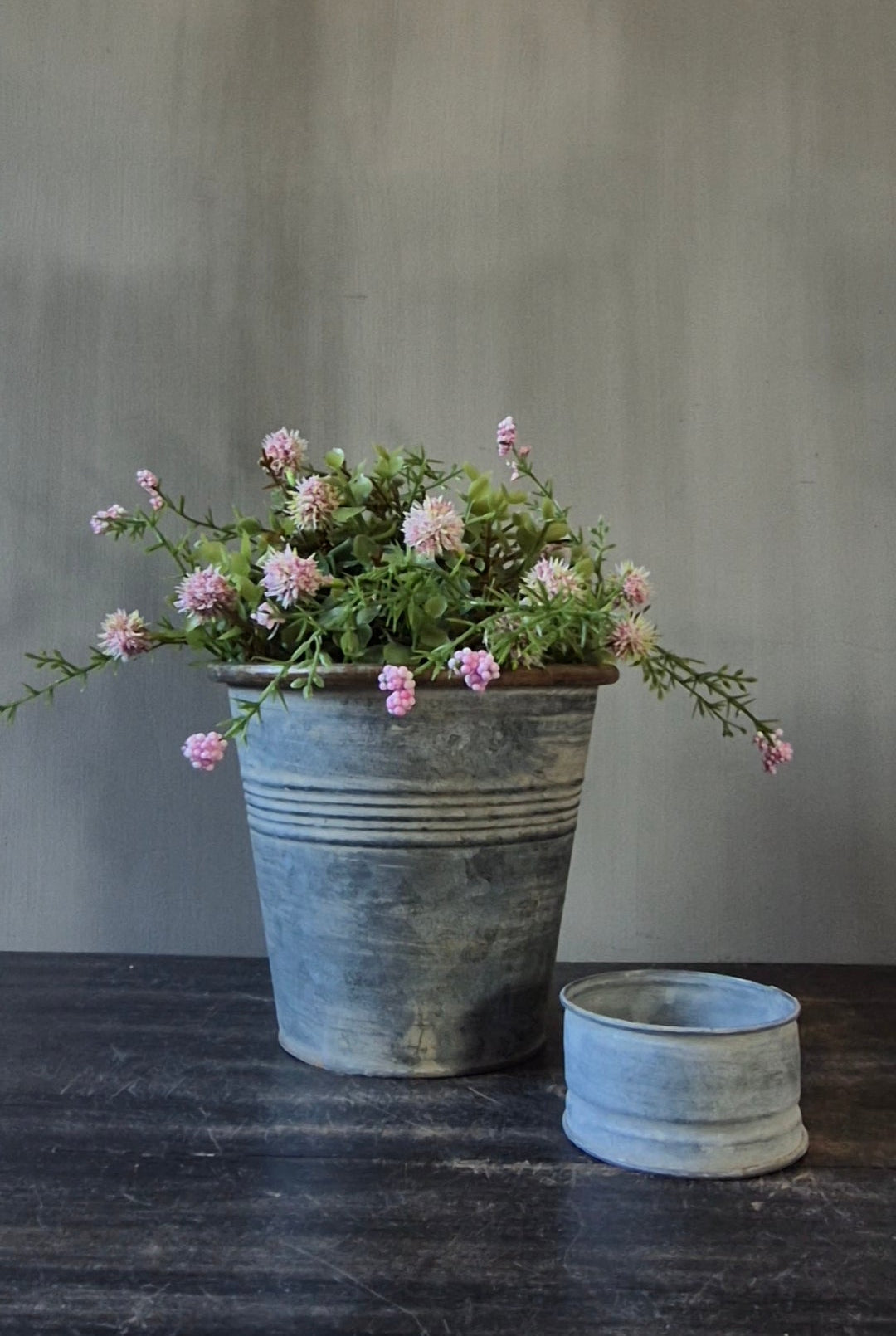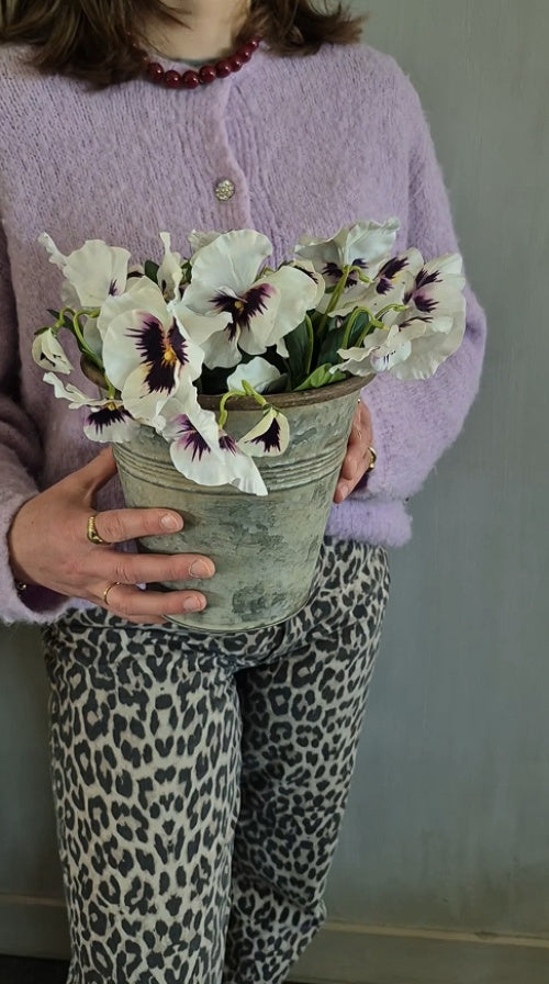 Set ronde zinken pot D20cm met witte violen