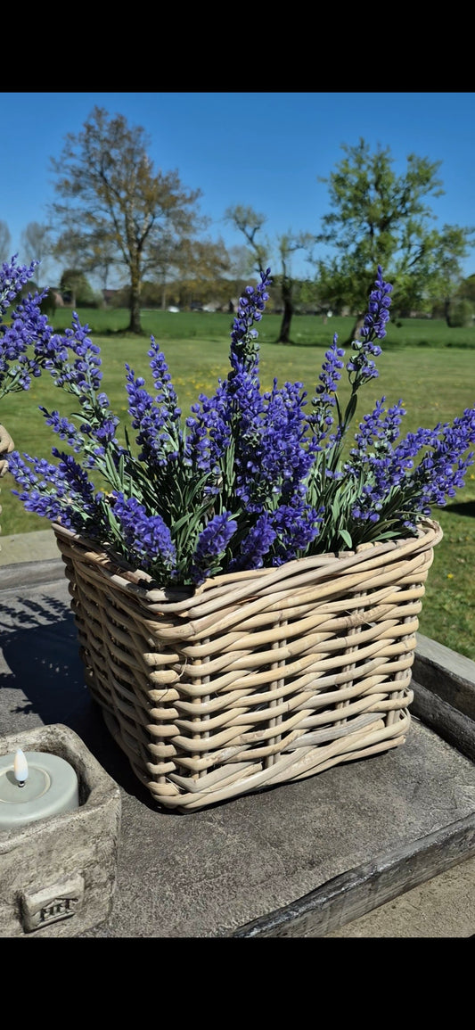 Set vierkante mand D27 H25cm met paarse lavendel