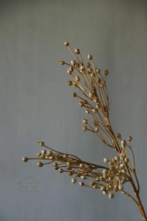 Lijnzaadbolletjes kunsttak goud geel - 66cm