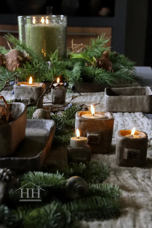 Een betonnen waxinelichthouder in maat L van onze eigen lijn. Dit is het grootste theelicht houder en uitermate geschikt voor een groot LED waxinelicht. Het betreft op de foto's de grootste houder. De houder is 7cm hoog en heeft een diameter van 6-7cm. De houders worden met de hand gemaakt, waardoor ze in vorm en kleur iets van elkaar kunnen verschillen.