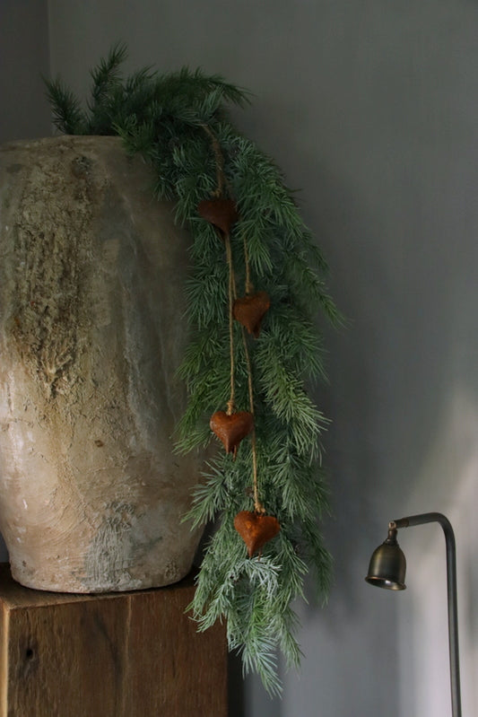 Ceder kunsttoef Guirlande real touch 130cm met roestige metalen hartjes aan touw