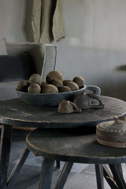 Houten ballen, of het nu enkele bollen zijn of een verzameling van verschillende maten, brengen verfijning en veelzijdigheid in je inrichting. Deze ballen kunnen gebruikt worden als tafeldecoratie, in een decoratieve schaal of als aanvulling op andere decoratieve elementen. Hun strakke, natuurlijke look voegt een rustige esthetiek toe aan elke kamer.
