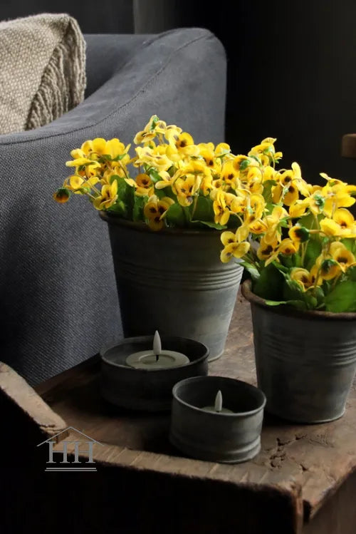Dit kunst viooltje in de kleur geel is perfect om een zinken schaal, betonnen pot of houten bak mee te vullen. Met een lengte van 22 cm is het een mooi formaat voor op de buitentafel of binnen. De zijden bloem zorgt voor een onderhoudsvrije, landelijke decoratie die er altijd mooi uitziet. LET OP: in de zon/bij daglicht verkleuren kunstbloemen. Zet ze in ieder geval onder een overkapping in de schaduw (en uit de regen) of binnen uit de zon.