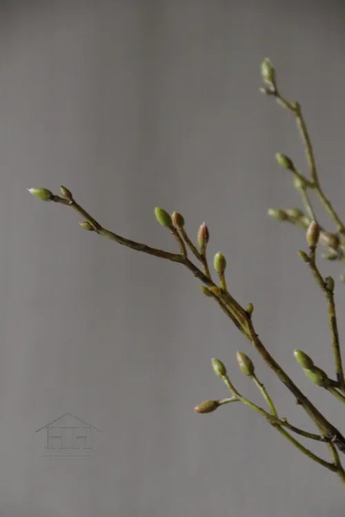 Deze kunst takken met groene knoppen (met soms iets bruin/rood), de takken van de lindeboom, zijn ongeveer 52 cm lang. Je kunt ze leuk mixen met (groene) takken en andere kunstbloemen. Op de foto zie je de bundel van 3 takken.