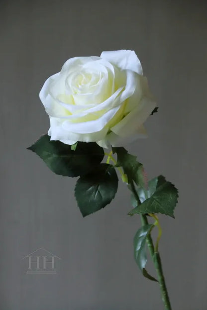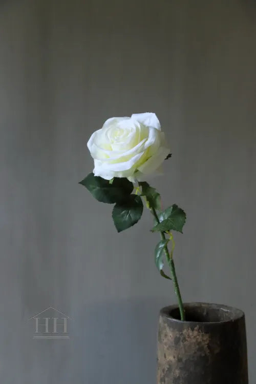 Kunstbloem roos in wit/creme is een stijlvolle keuze voor wie houdt van natuurlijke rust in huis, zonder het gedoe van echte bloemen. Deze rustieke kunstbloem heeft een lengte van 54 cm en bestaat uit een enkele steel met 1 roos en groene bladeren. Een mooie realistische roos.