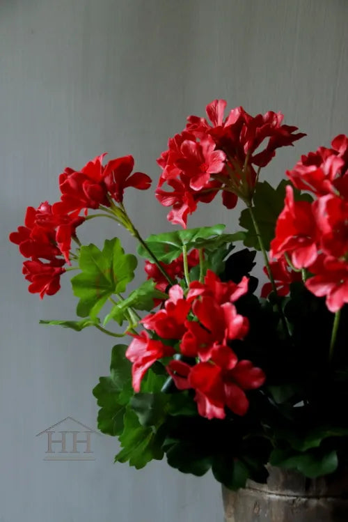 - Kunst geraniums: vrolijk gekleurde bloemen met kunststof blaadjes