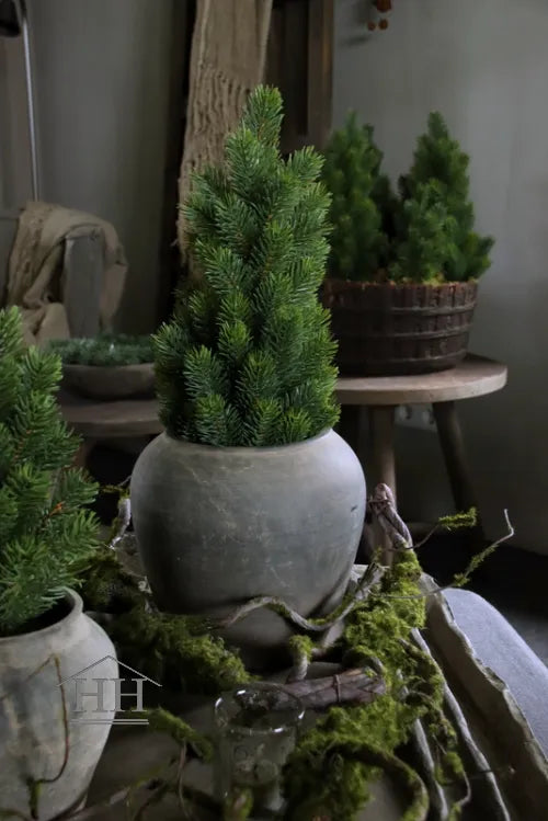 Een grijs kleurige terracotta kruik met een hoogte van 22 cm en 22,5cm op z'n breedst.