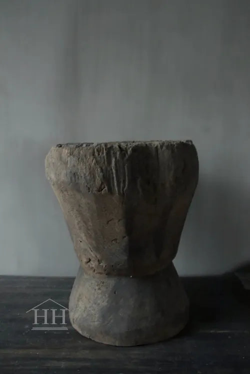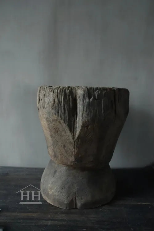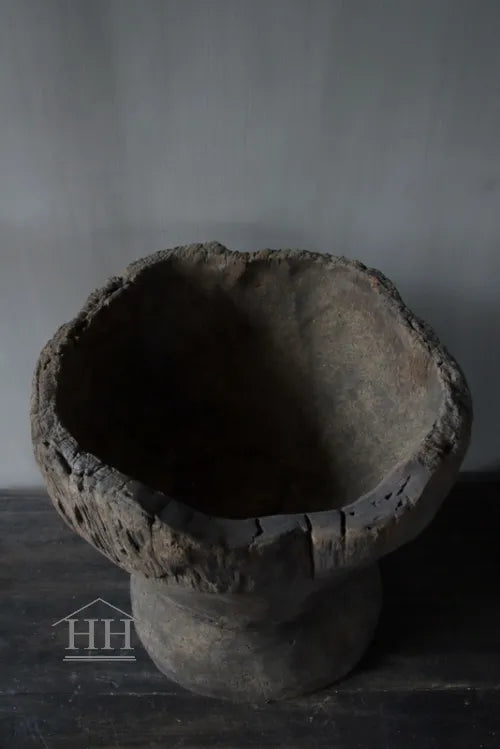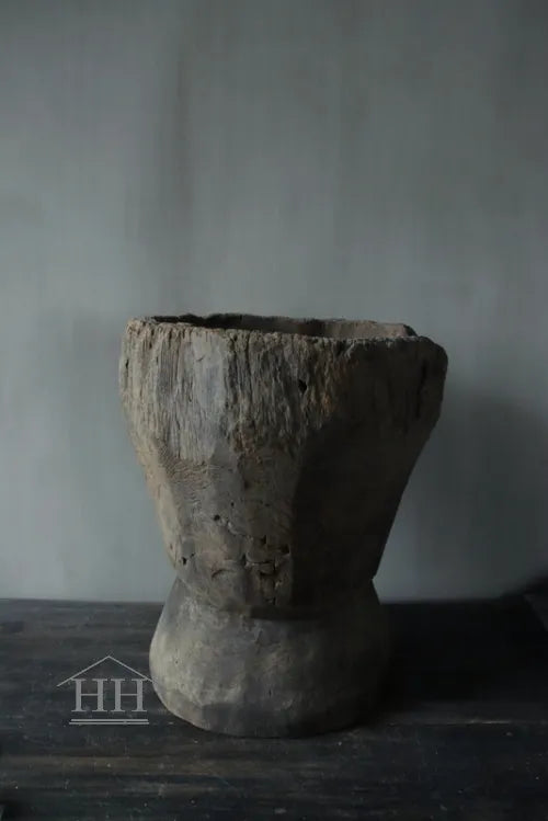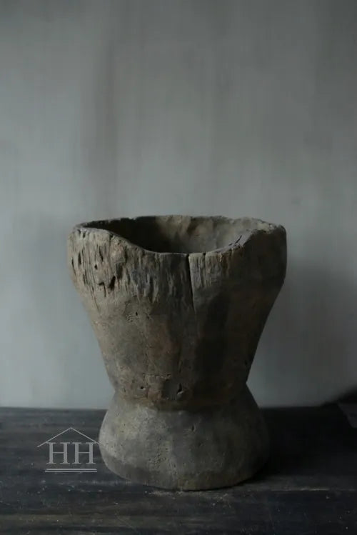 Een vergrijsde vijzel van Luksa met een diameter van ongeveer 33 cm op het breedst bovenaan en 30 cm op het breedst onderaan.