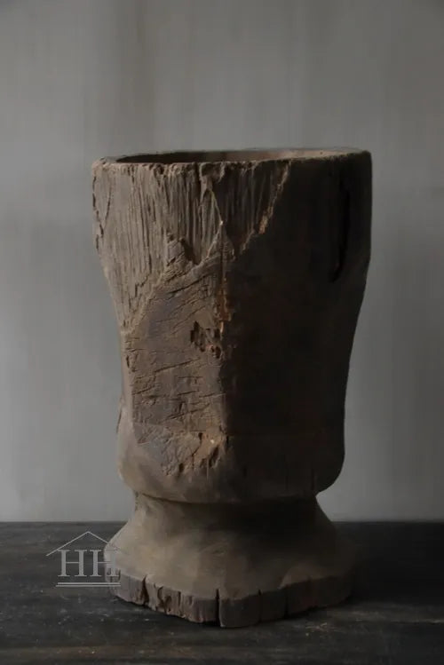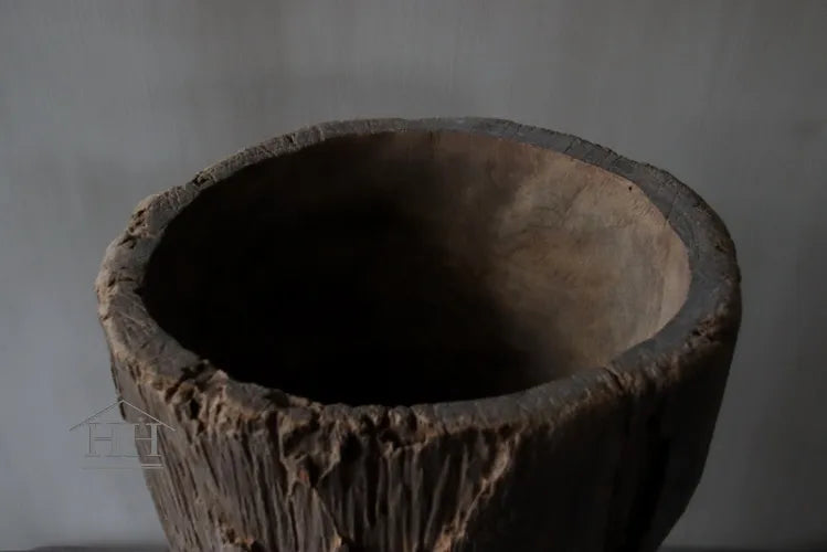 Een vergrijsde vijzel van Luksa met een diameter van ongeveer 29 cm op het breedst bovenaan en 29 cm op het breedst onderaan.