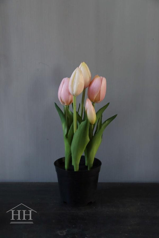 Kunst tulpen in potje licht roze - 24 cm