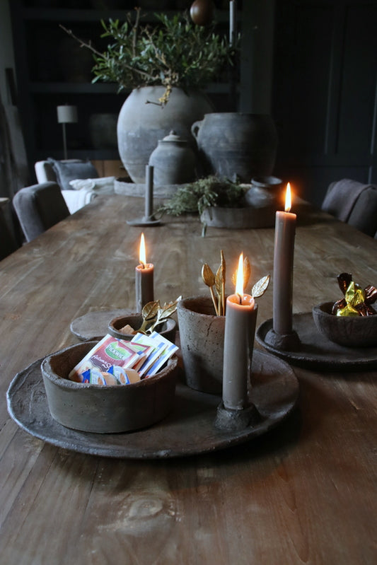Langwerpige schalen zijn ideaal voor smalle en lange tafels. Ze zijn stijlvol en praktisch. Gebruik ze voor het stijlen van allerlei decoraties zoals losse kunsttakken, sfeervolle kunstkaarsen en kleine houten accessoires. Ze voegen een rustiek element toe aan je tafel.