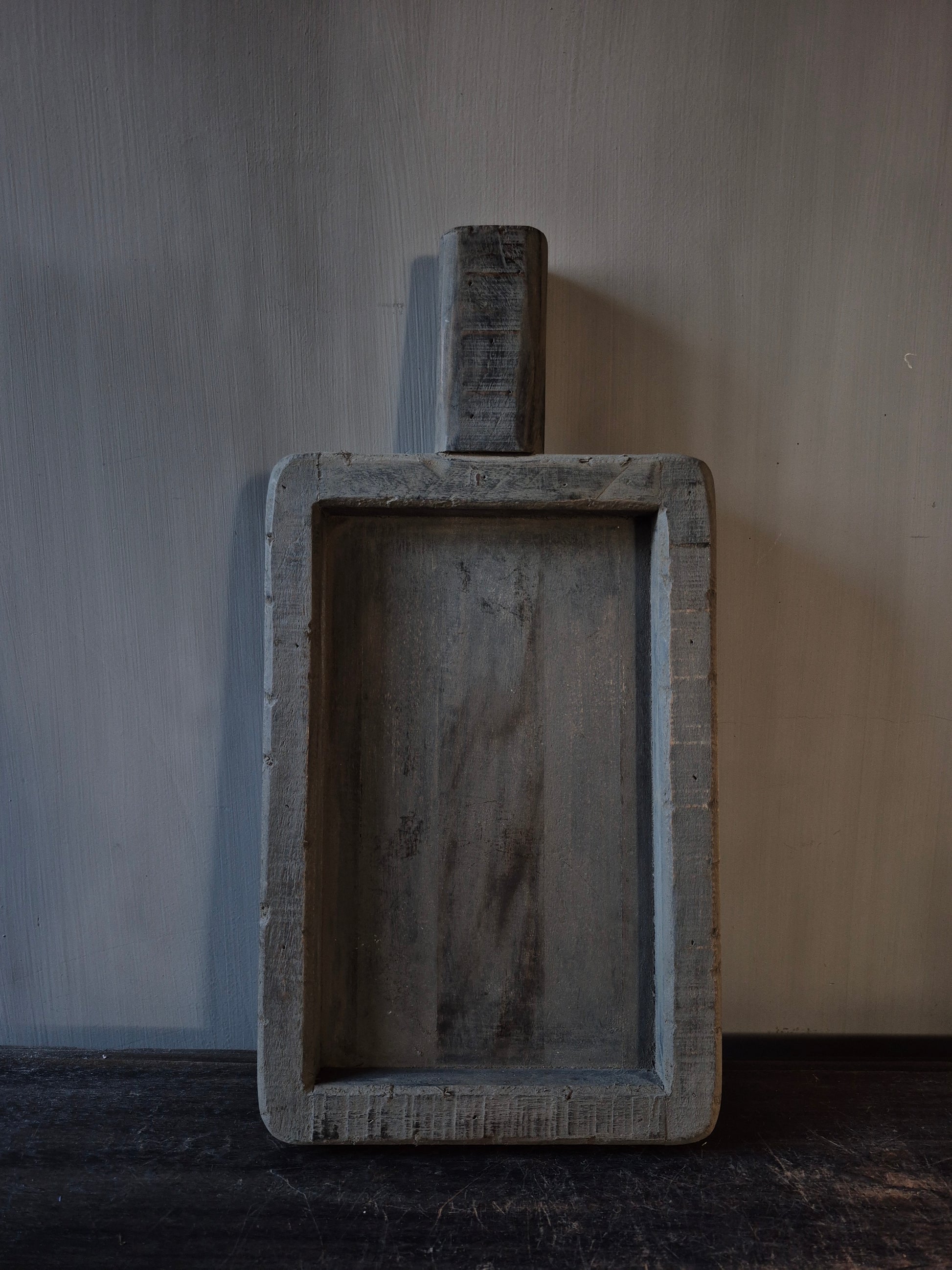 Een robuuste, stoere en vergrijsde serveerplank die erg leuk is om de suiker, melk en lepeltjes mee op te dienen tijdens de koffie/thee.