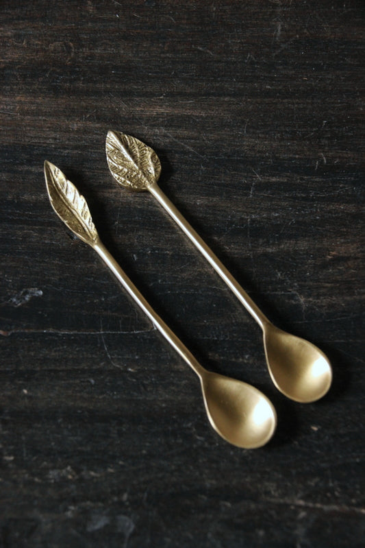 set lange messing lepeltjes met blaadjes