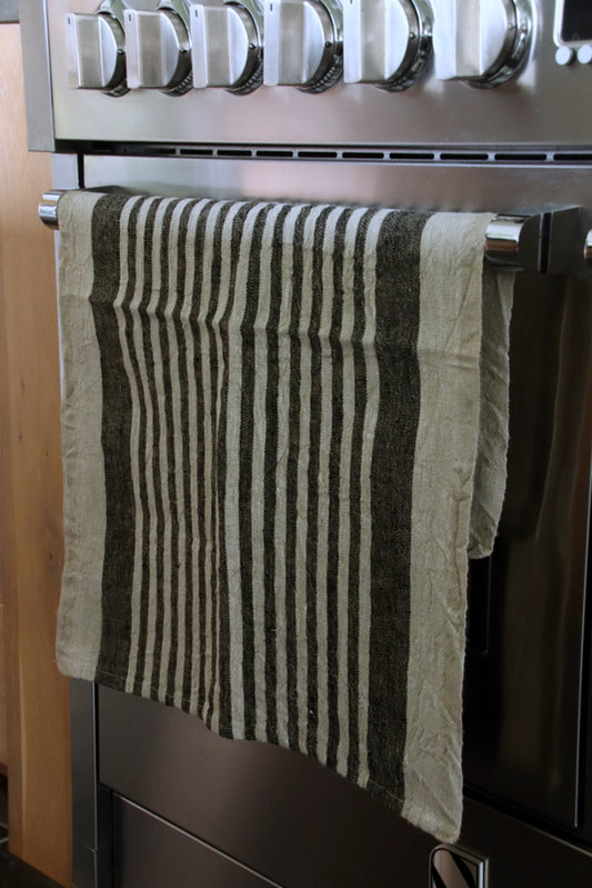 Linnen theedoek zwarte streepjes fijn (bovenste)