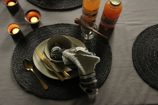 Untersetzer-Tischset aus Jute, dunkelgrau, oval, 52 x 42 cm