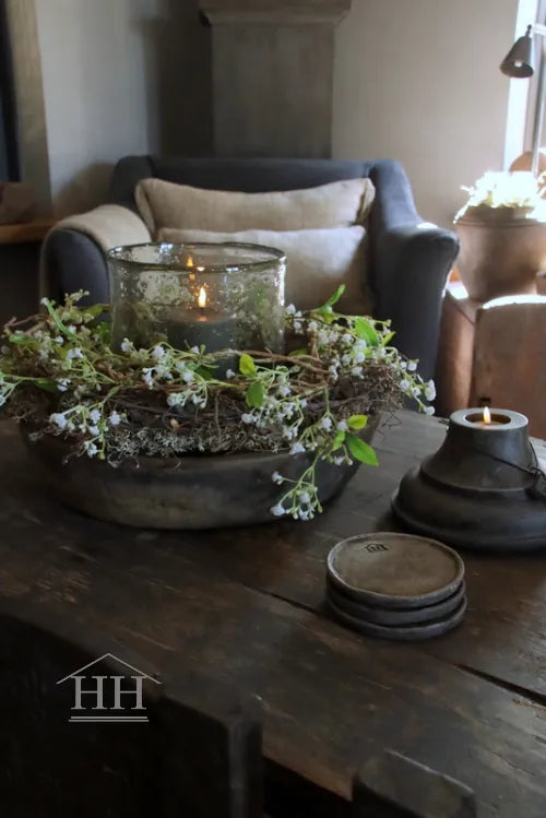 Seidenblumen verleihen Ihrem Interieur Sanftheit und Harmonie. In Kombination mit Leinen, Holz und Rattan schaffen Sie die Ruhe, die den Landhausstil auszeichnet.