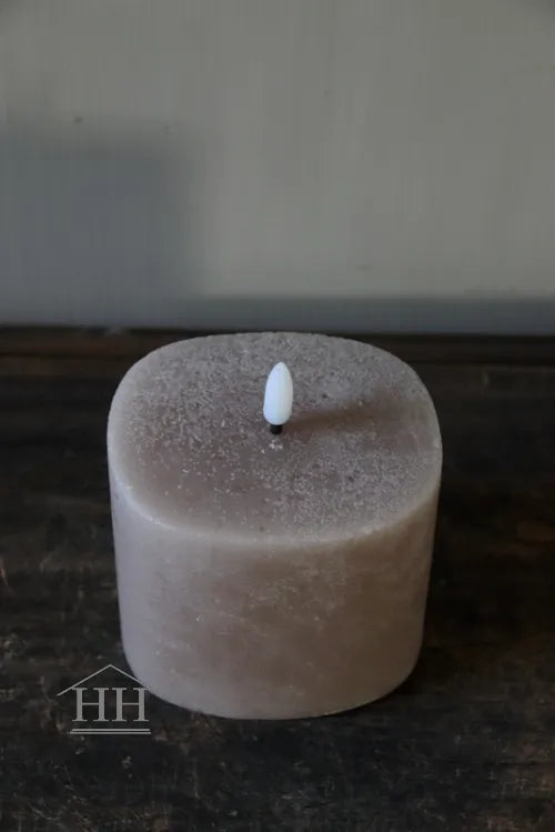 Een ovale kaars in een zand kleur en een realistisch flikkerend vlammetje dat zacht warm wit licht uitstraalt. De vloeiende lichtintensiteit zorgt voor een rustgevende en natuurlijke uitstraling, perfect voor een gezellige avond thuis of als decoratieve toevoeging aan je interieur.