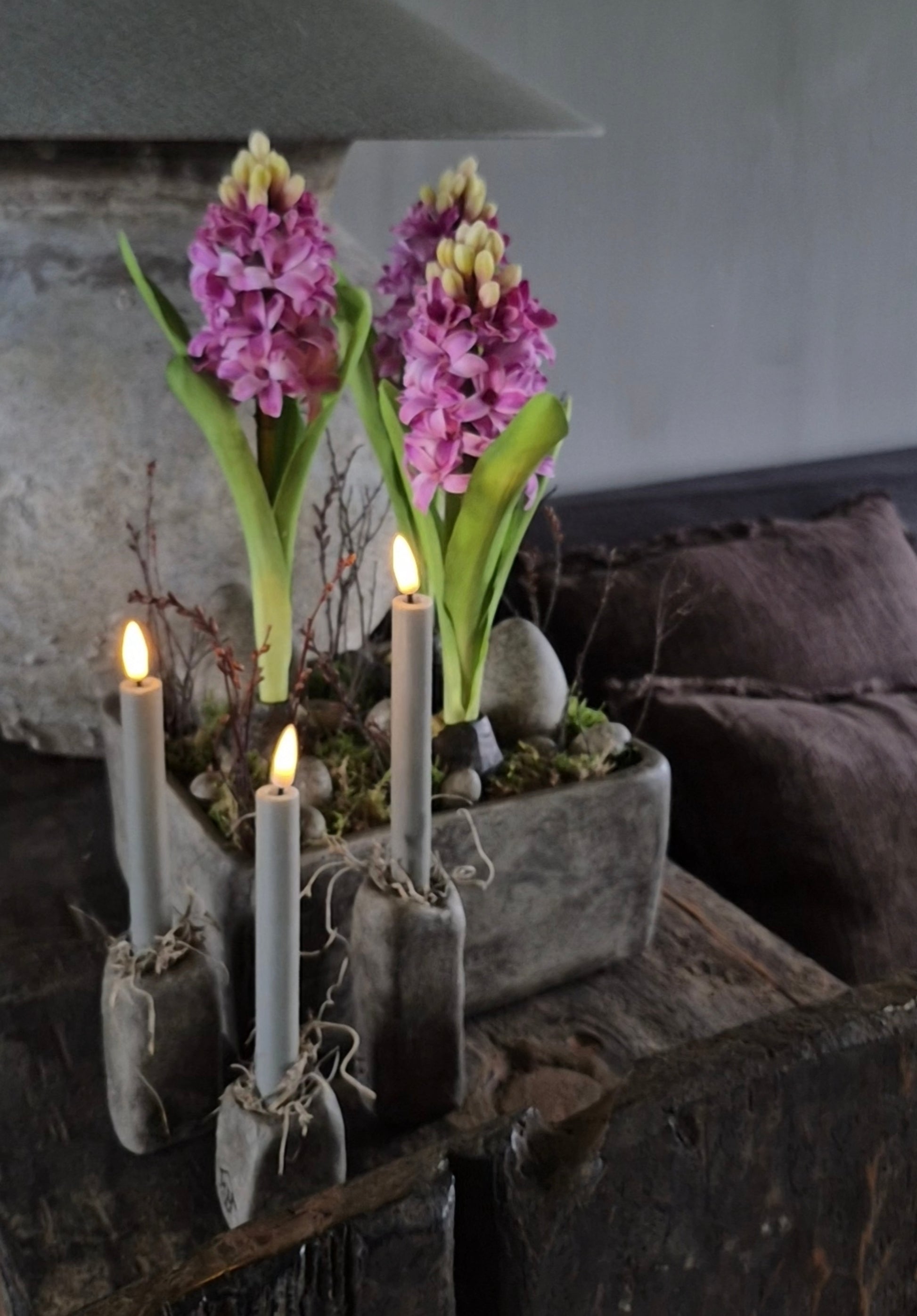 Een lila kunst hyacint op bol is een stijlvolle keuze voor je lente- en voorjaarsdecoratie. Deze groene hyacint is ongeveer 30 cm lang zonder de steker. Er zit een steker aan zodat je deze makkelijk in oasis met mos kunst steken en zo een leuke voorjaarsstyling kunt maken in elke bak, trog, schaal of vijzel. Kunst hyacinten bieden een onderhoudsvrije oplossing voor een langdurig mooie decoratie.