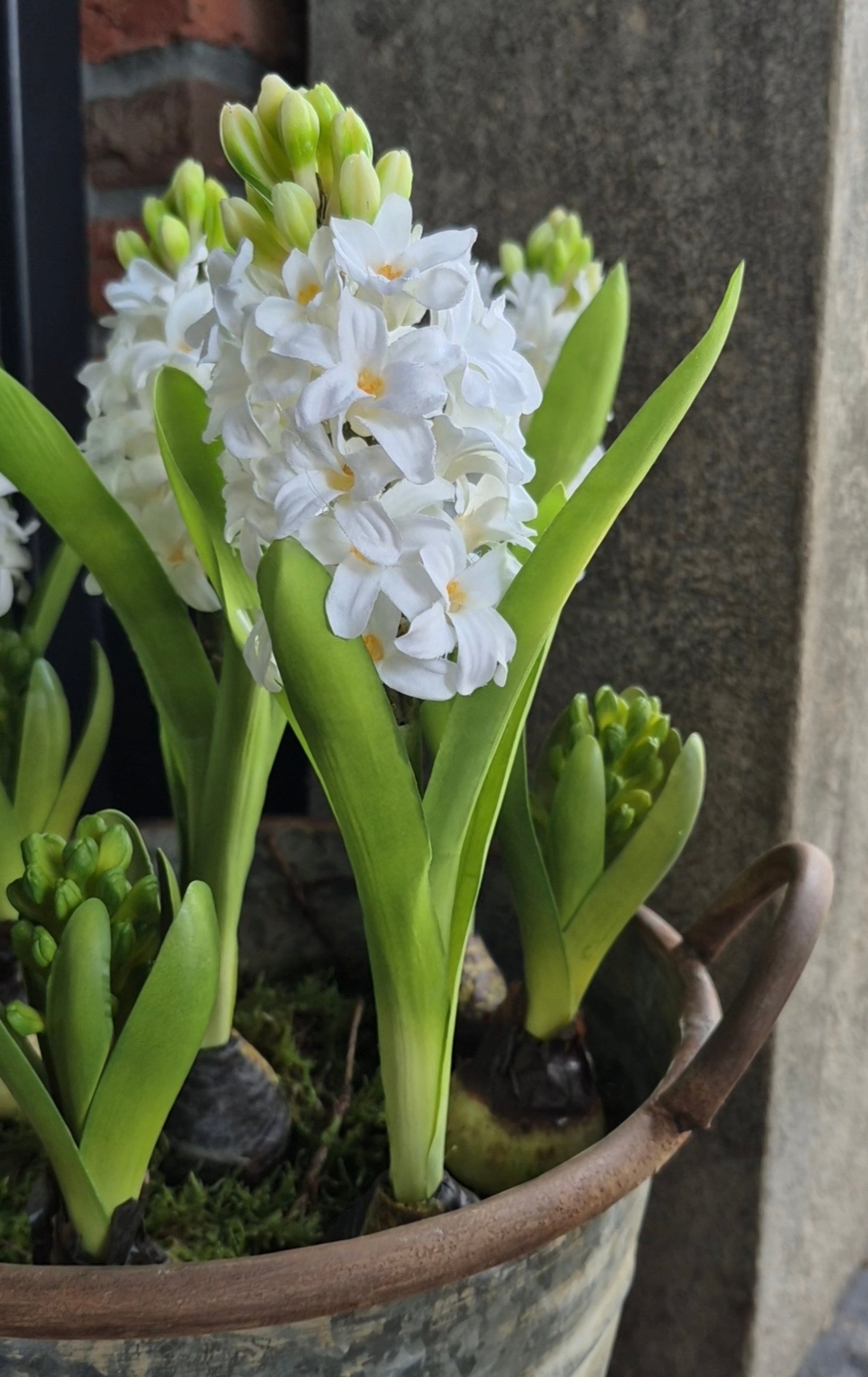 Een witte kunst hyacint op bol is een stijlvolle keuze voor je lente- en voorjaarsdecoratie. Deze groene hyacint is ongeveer 30 cm lang zonder de steker. Er zit een steker aan zodat je deze makkelijk in oasis met mos kunst steken en zo een leuke voorjaarsstyling kunt maken in elke bak, trog, schaal of vijzel. Kunst hyacinten bieden een onderhoudsvrije oplossing voor een langdurig mooie decoratie.