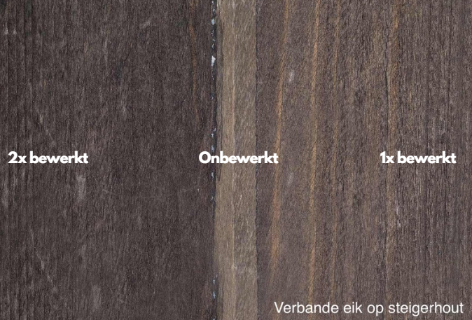 Sie können je nach Wunsch verschiedene Schichten auftragen. Je mehr Schichten, desto dunkler wird der Effekt. Daher ist es ratsam, ein Stück zunächst an der Unterseite oder an der Seite zu testen. Ergiebigkeit: 8-10 m2 pro Liter, je nach Art und Porosität des Untergrundes.
