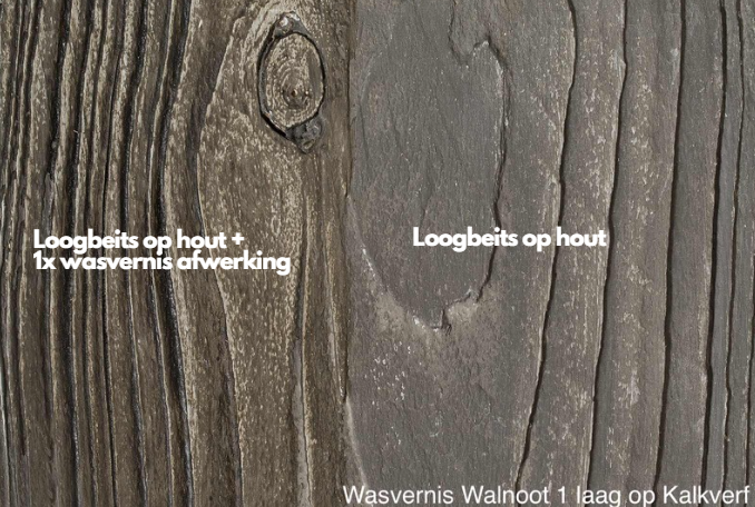 Auf dem Kalkfarbenfoto sehen Sie rechts unbearbeitet und links sehen Sie Kalkfarbe, die einmal mit Walnusswachslack behandelt wurde.