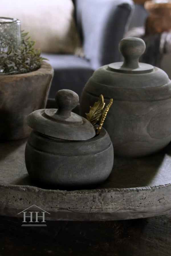 Ein Holzglas mit Deckel von Aura Peeperkorn.