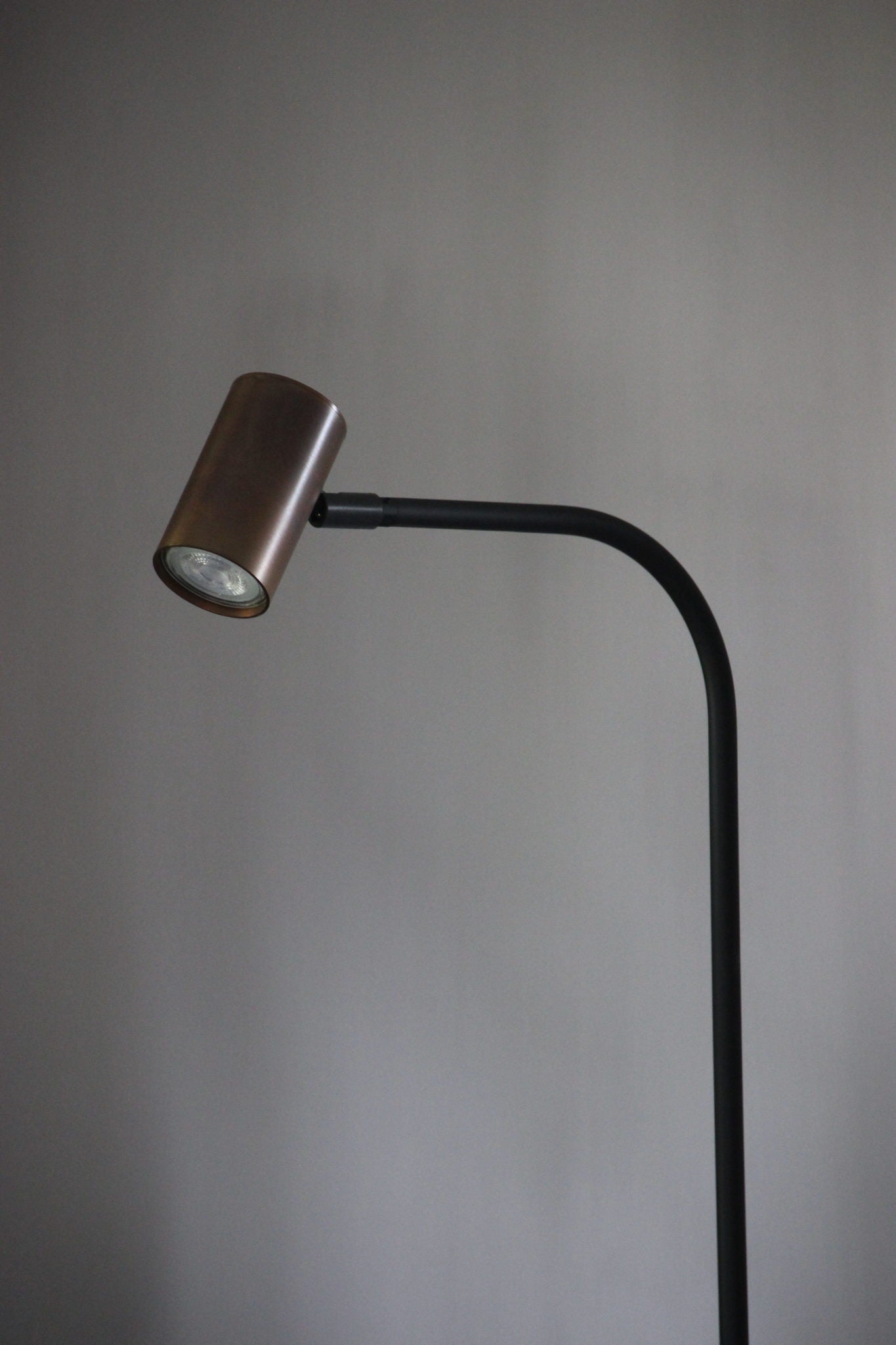 Stehleuchte Tubino von Frezoli mit Kupferschirm und GU10 LED-Leuchtmittel.