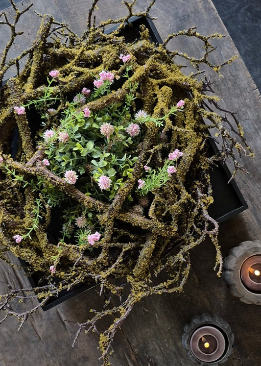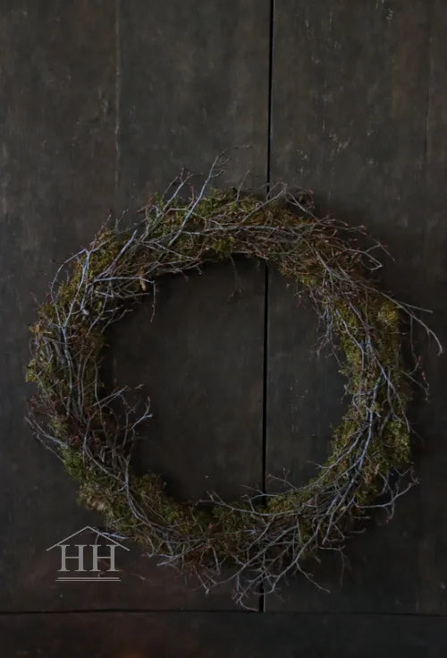 Wreath of artificial branches and artificial moss