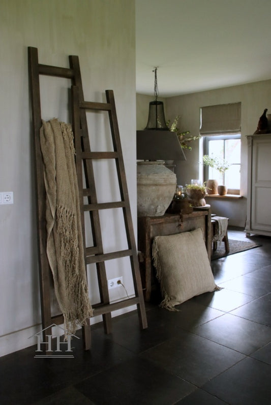 Discover our collection of wooden ladders at Hillary'sHome. These versatile pieces not only add a rustic accent to your interior, but also serve as a functional storage solution. Use them to hang blankets, display plants or store towels. A clever mix of form and function.