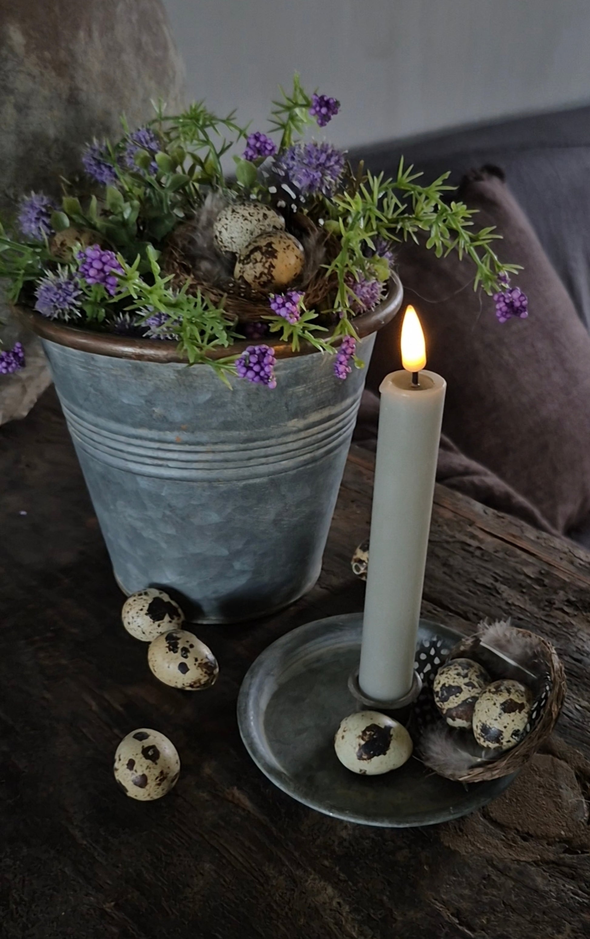 The candlestick is delivered without the candle, nest, and eggs, but these can be ordered separately in the webshop.