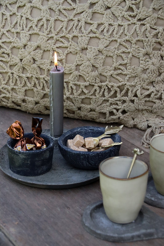 Waxinelichthouders zwart terracotta - Gommaire - set van 3