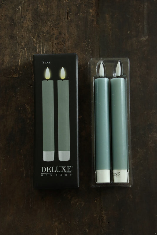 LED dinner candle sage green 15cm - 2 pieces - Deluxe Homeart