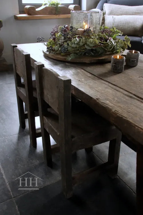 It is a sturdy chair made of old wood from the Old Farm collection.