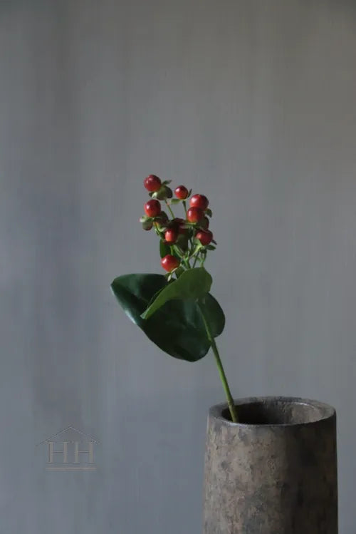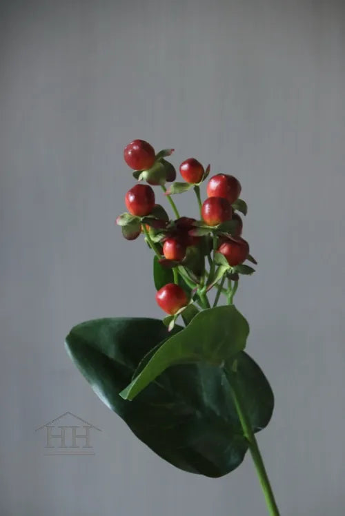 A hyperium single stem with a length of approximately 47 cm. This artificial branch with berries is perfect to mix with other loose artificial flowers and artificial branches for a bouquet. They remain beautiful for a long time without maintenance. Ideal for a rural and natural atmosphere. In the photo you see 1 branch.