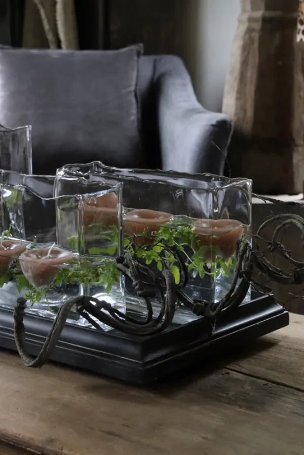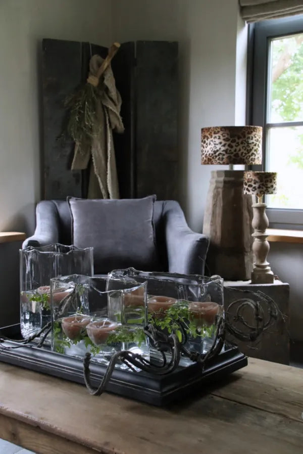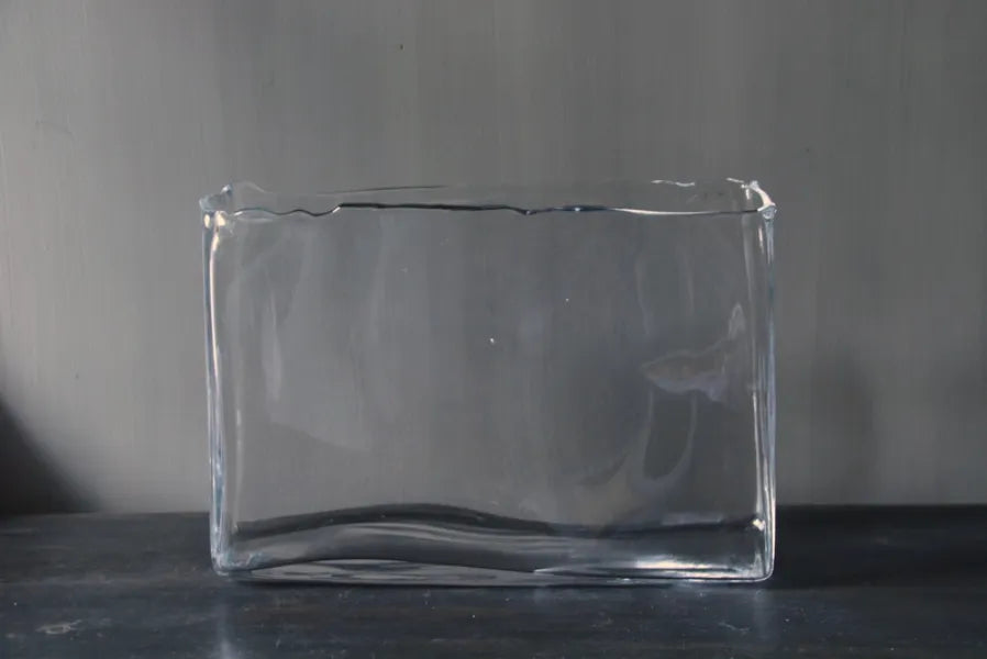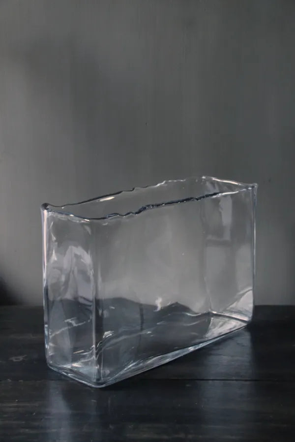 The elongated clear glass battery vase is a stylish choice for a country interior. With its dimensions of 20 cm high, 30 cm long and 10 cm wide, this vase is perfect to use as a lantern, with floating candles, or simply as a vase. The graceful edge makes each piece unique, as the vases are handmade. Small bubbles or imperfections in the glass are possible, which contributes to the charm of this item. Combine with other battery vases for a harmonious whole.