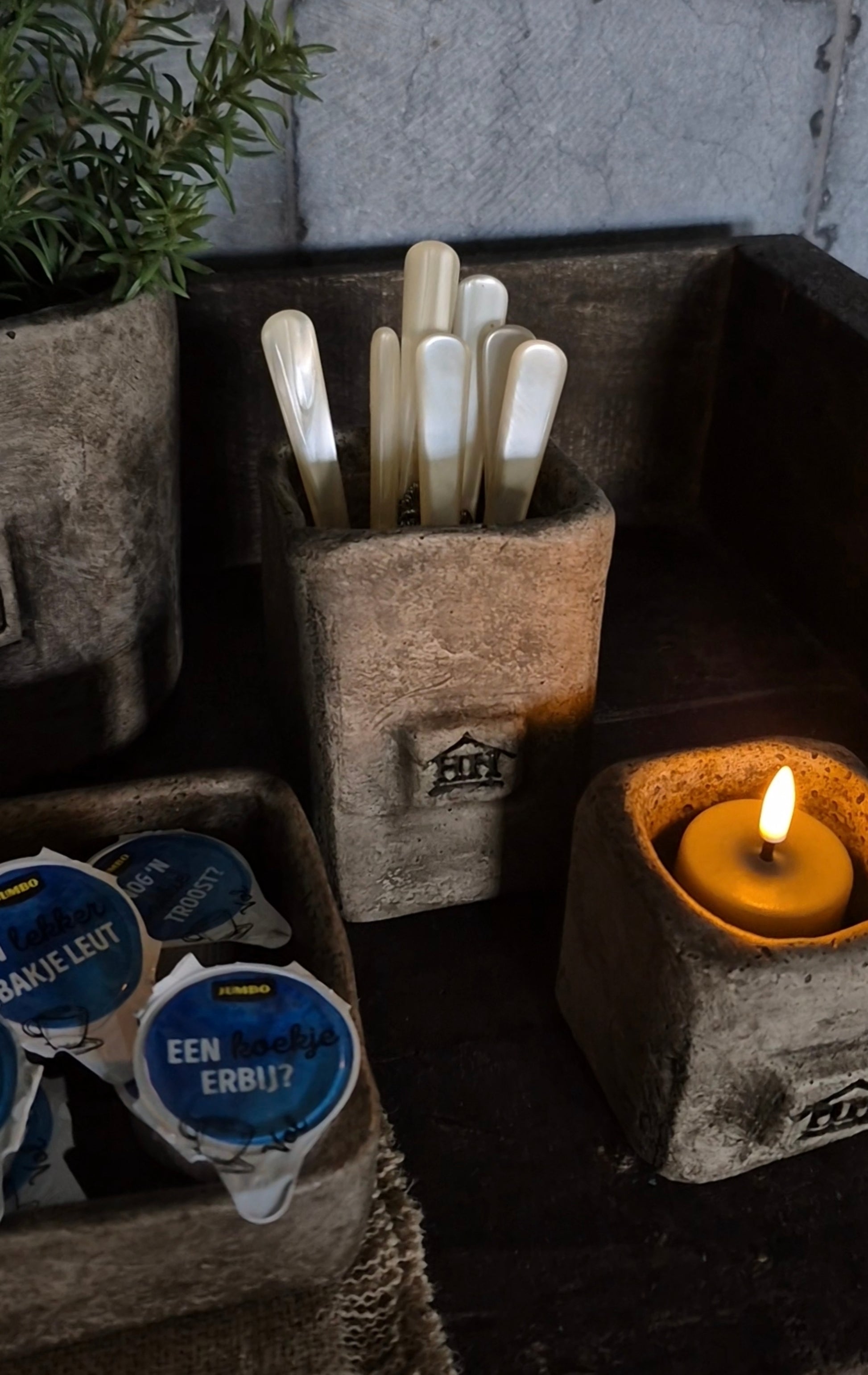 Leuk als lepelbeker op tafel tijdens je koffie/thee moment of als pennenbakje op je bureau.