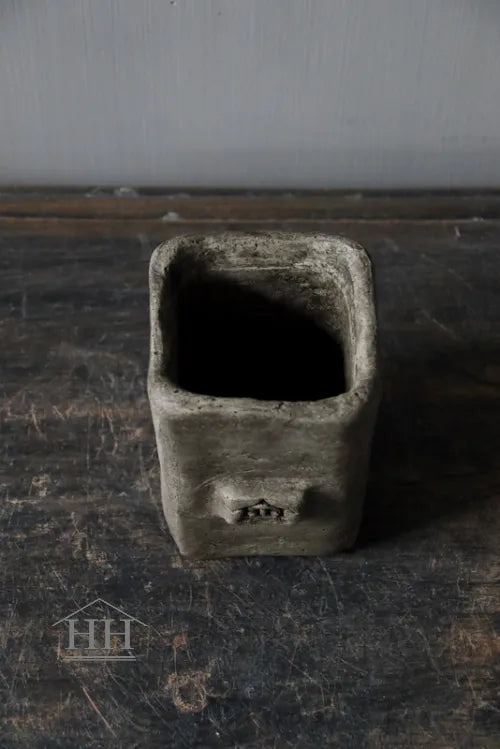 Een vierkante betonnen beker in de kleur taupe, de kleur van mijn eigen lijn betonnen schalen en bakken zodat deze er mooi bij combineert.