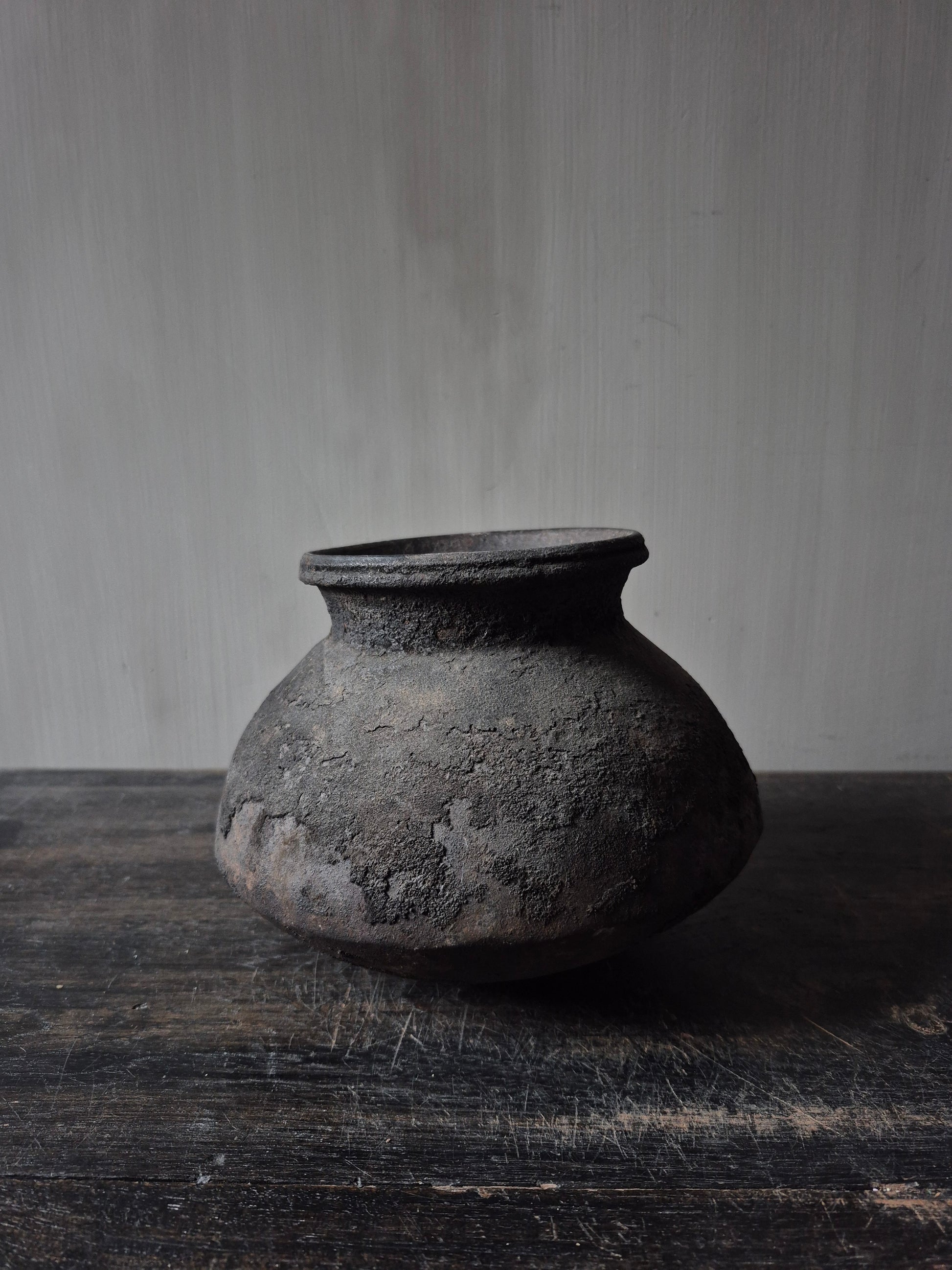 Het is een oude kruik, waardoor er krasjes, deukjes en soms kleine stukjes uit zijn, dit hoort erbij.