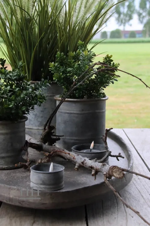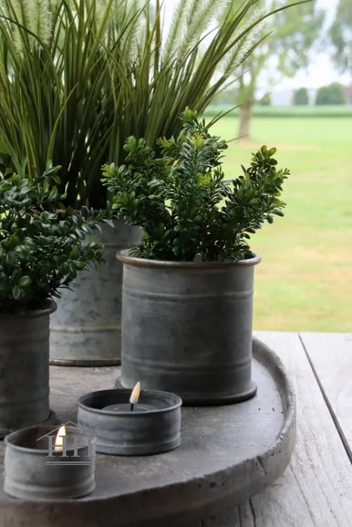 De buxus plant wordt geleverd zonder de zinken pot. Deze is wel in de webshop erbij te bestellen.