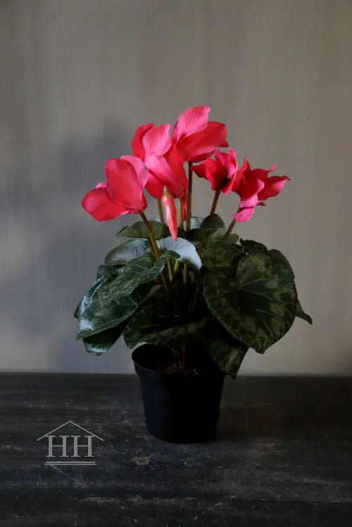 mDeze kunstplant cyclaam in de kleur donker roze met zijde bloemen en blad is perfect voor een landelijke styling. Met een lengte van 29 cm is het een makkelijke manier om een houten of betonnen pot mee te stylen.