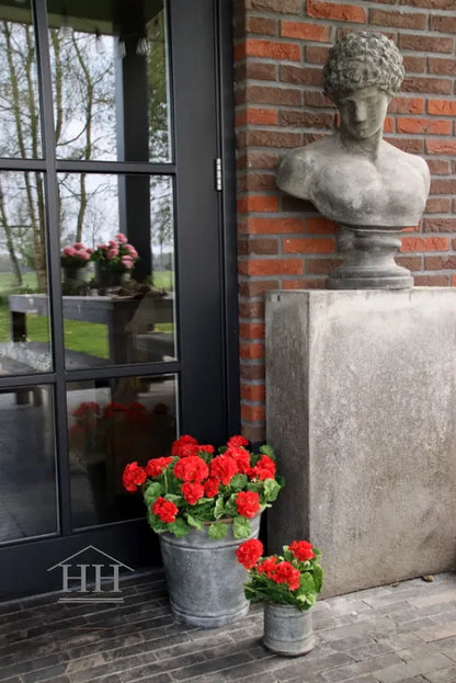 Deze rode kunstplant geranium met zijde bloemen en blad is perfect voor een landelijke styling, zowel binnen als buiten onder een overkapping. Met een lengte van 26 cm is het een makkelijke manier om een schaal, emmer of pot direct gezellig aan te kleden.