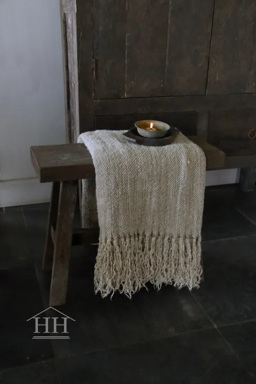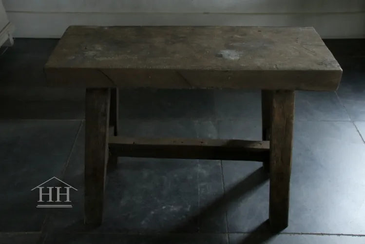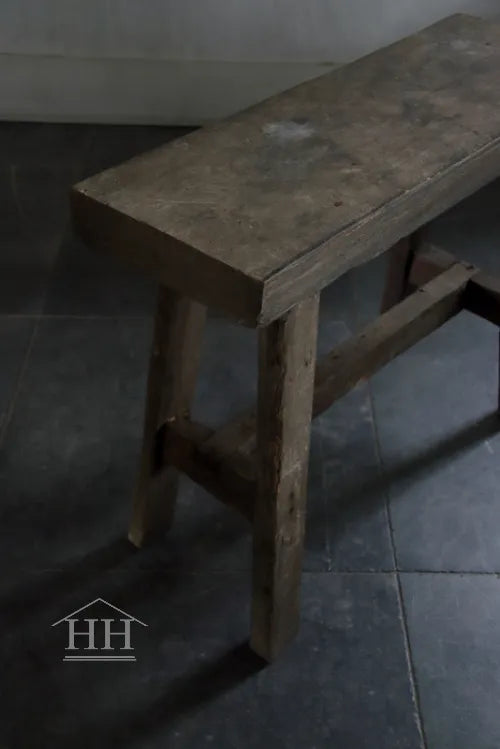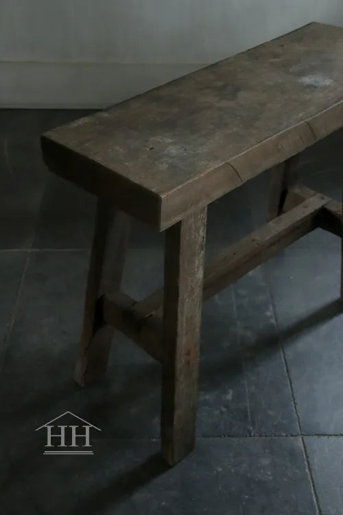 Een houten bankje van Aura Peeperkorn met een hoogte van 48,5 cm.