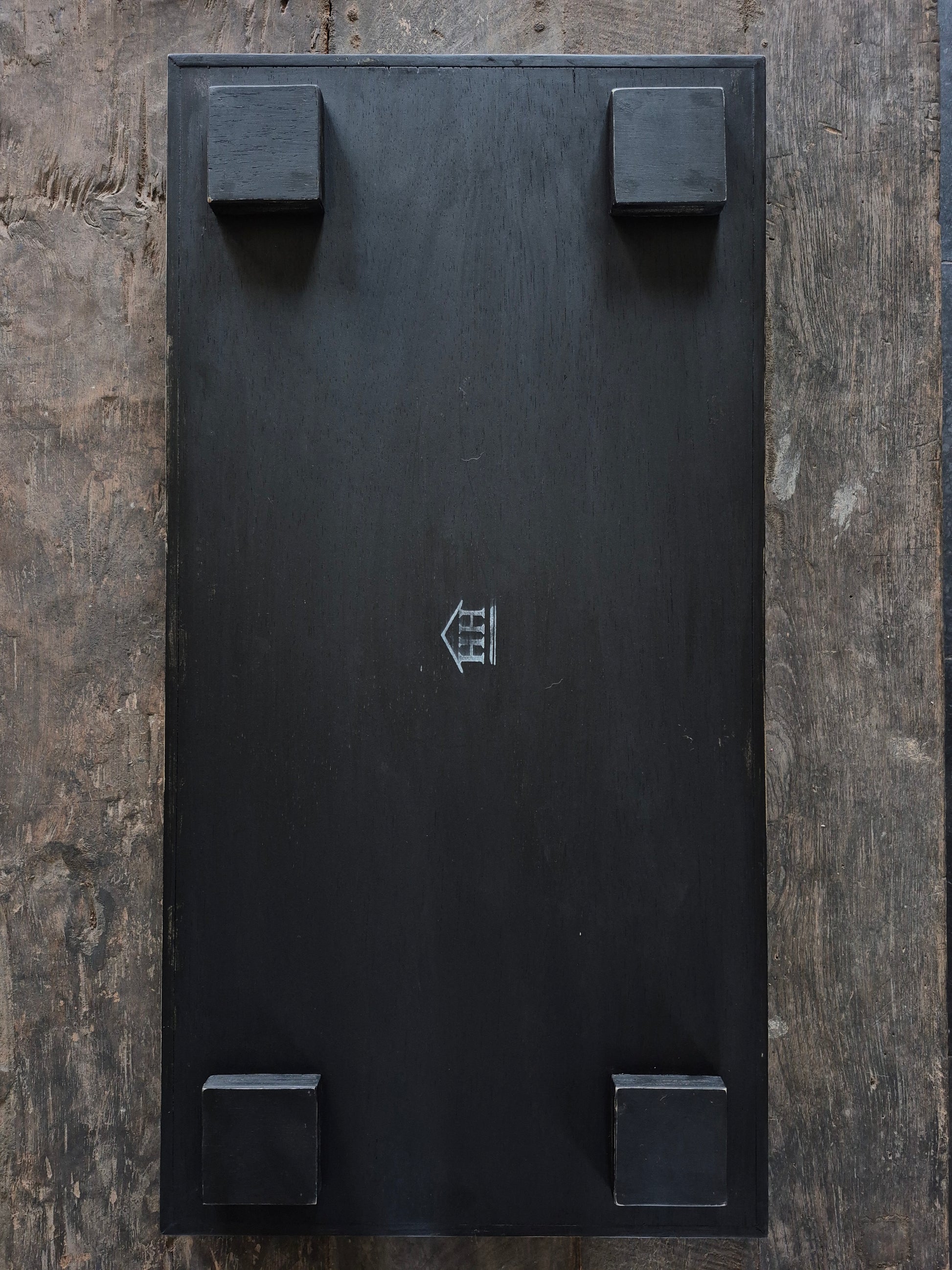 Het dienblad is niet effen zwart, het is op verschillende plekken door geschuurd wat een levendig effect geeft. Dit is handwerk en kan per dienblad verschillen.