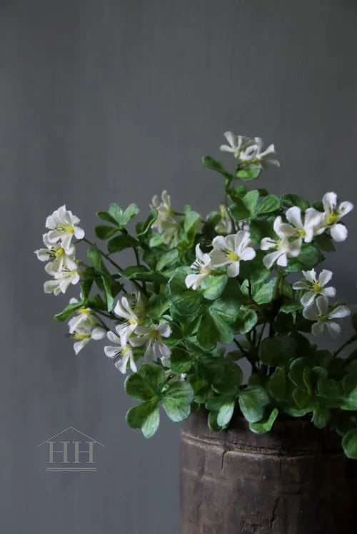 Deze kunstplant klaver met witte bloemen is perfect voor een landelijke styling, zowel binnen als buiten onder een overkapping. Met een lengte van 33 cm is het een makkelijke manier om een schaal, emmer, schenkkan of pot direct gezellig aan te kleden.