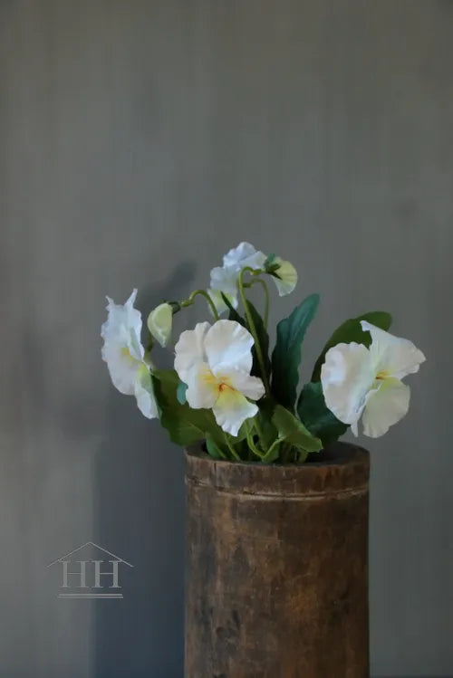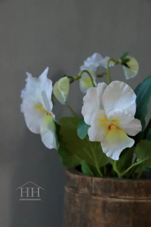 Deze kunstviool in de kleur wit met geel hartje is perfect om een zinken schaal, betonnen pot of houten bak mee te vullen. Met een lengte van 25 cm is het een mooi formaat voor op de buitentafel of binnen. De zijden bloem zorgt voor een onderhoudsvrije, landelijke decoratie die er altijd mooi uitziet. LET OP: in de zon/bij daglicht verkleuren kunstbloemen. Zet ze in ieder geval onder een overkapping in de schaduw (en uit de regen) of binnen uit de zon.
