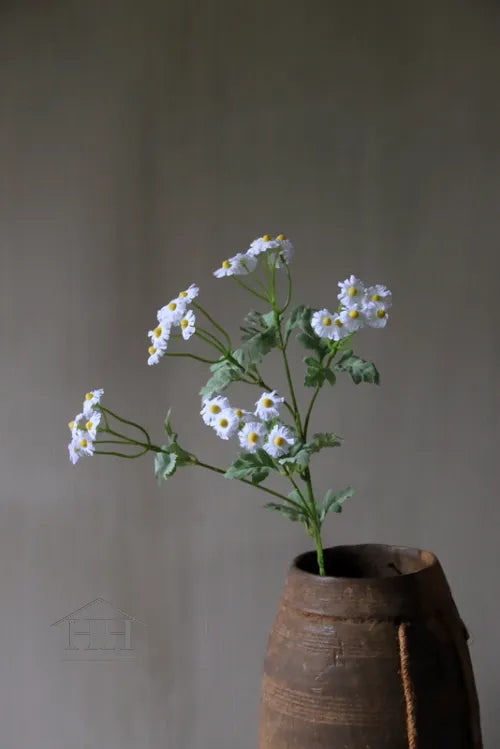 Kunstbloem madeliefje in wit is een stijlvolle keuze voor wie houdt van natuurlijke rust in huis, zonder het gedoe van echte bloemen. Deze rustieke kunstbloem heeft een lengte van 61 cm en bestaat uit een enkele steel met vertakkingen met kleine madeliefjes en groene bladeren.