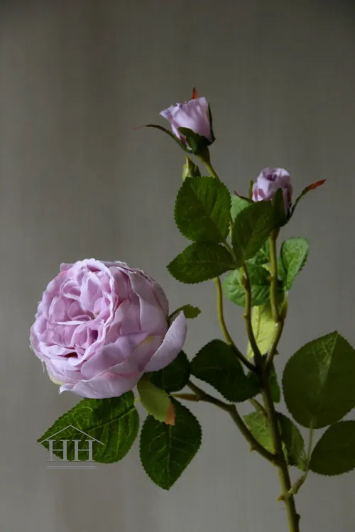 Kunstbloem roos in lila is een stijlvolle keuze voor wie houdt van natuurlijke rust in huis, zonder het gedoe van echte bloemen. Deze rustieke kunstbloem heeft een lengte van 52 cm en bestaat uit een enkele steel met 1 bloeiende roos en 2 rozen in knop en 1 dichte knop en groene bladeren.