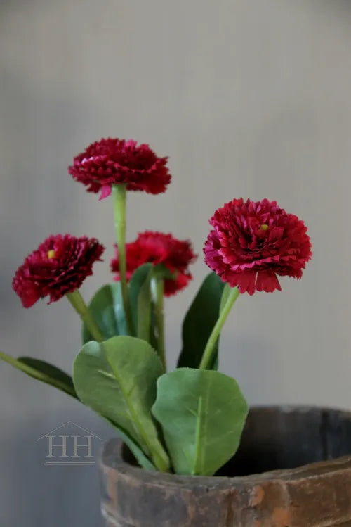 Het madeliefje kunstbloem in donker roze is de perfecte aanvulling voor een landelijke styling in huis of onder je overkapping. Dit kunst madeliefje heeft een lengte van 24 cm en is ideaal om in een zinken schaal, betonnen pot of houten bak te steken. Door de warme kleur en natuurlijke uitstraling breng je in één keer sfeer aan. De steel telt vijf bloemen, elk met een diameter van ongeveer 4,5 cm, en heeft fijne vertakkingen voor een speels effect.