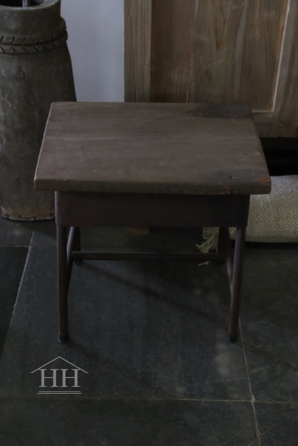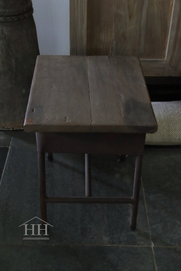 Het onderstel is van metaal en bovenblad van hout.